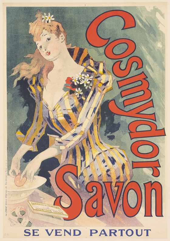 Lithograph in vermilion, yellow, blue green, Prussian blue, and light brown