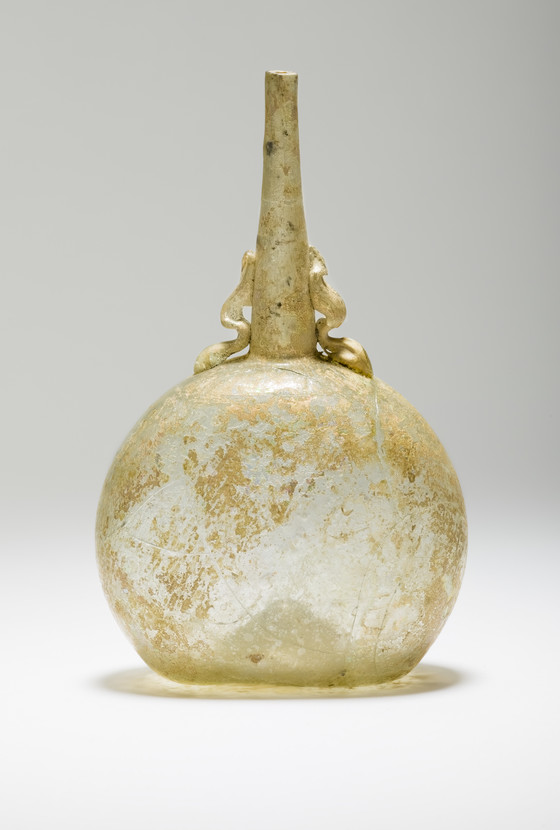 Glass, free-blown, applied handles