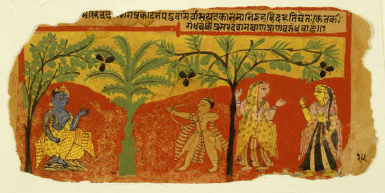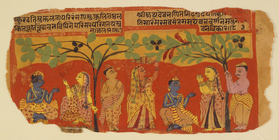 Krishna and Gopis (recto), Kamadeva, God of Desire, Shooting an Arrow at Krishna (verso); Folio from a Gita Govinda (Song of the Cowherd)
