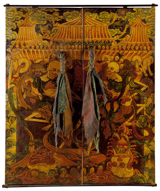 Doors from an Offering Cabinet (Torgam) with Dancing Skeletons (Chitipati)