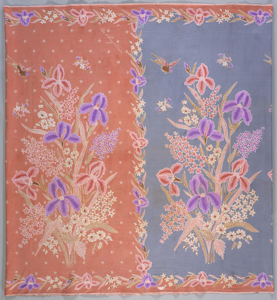 Hand-drawn wax resist (batik) on machine-woven cotton, synthetic dyes, waxed signature