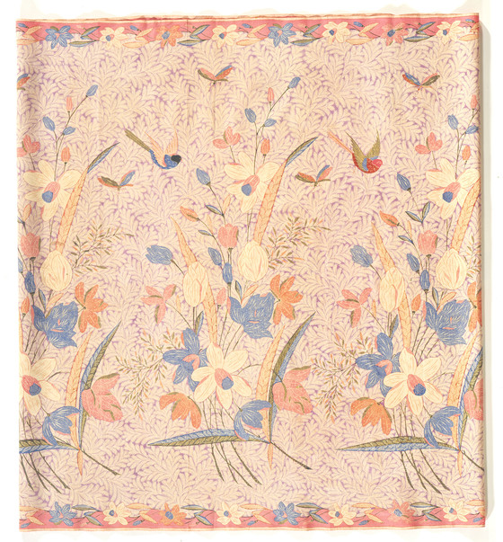 Hand-drawn wax resist (batik) on machine-woven cotton, synthetic dyes, waxed signature