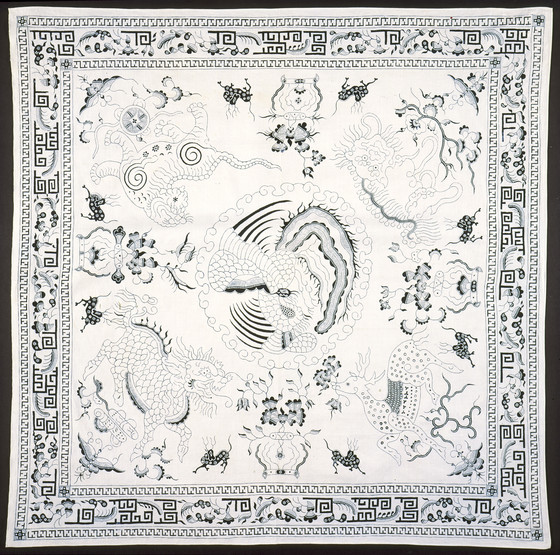 Hand-drawn wax resist (batik) on machine-woven cotton, natural dyes