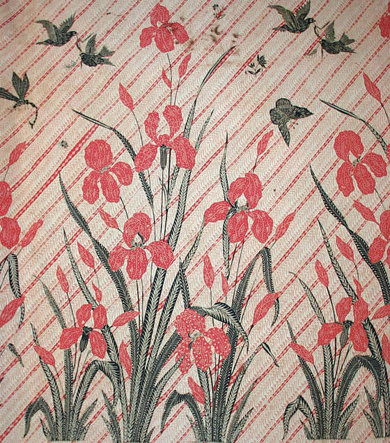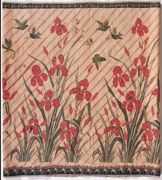 Hand-drawn wax resist on machine-woven cotton, synthetic dyes, waxed signature