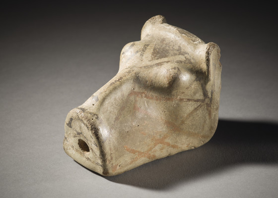Buff ware, cream slip, brown/black painted decoration