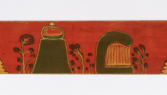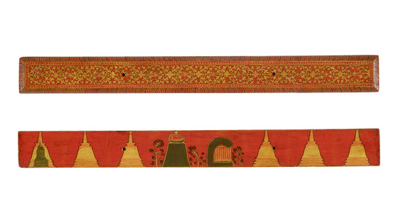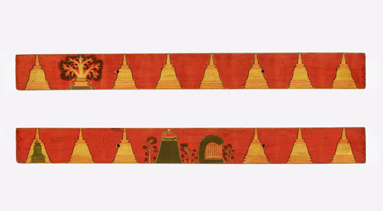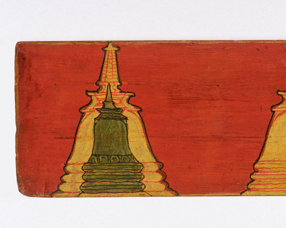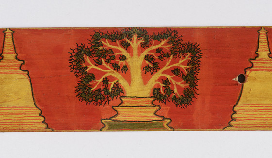 Palm Leaf Manuscript and Wooden Covers with Symbols of Sixteen Pilgrimage Sites