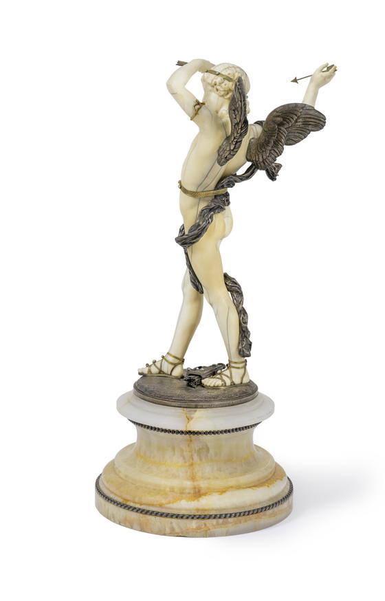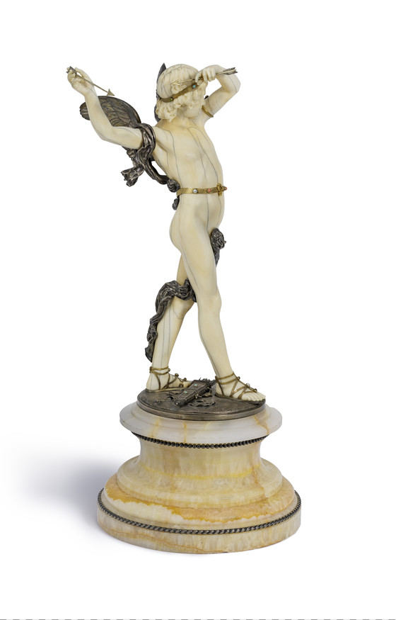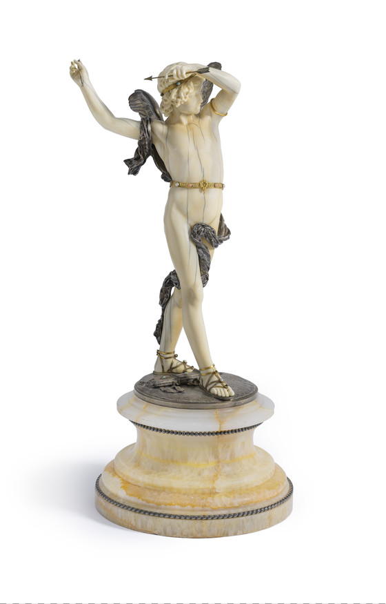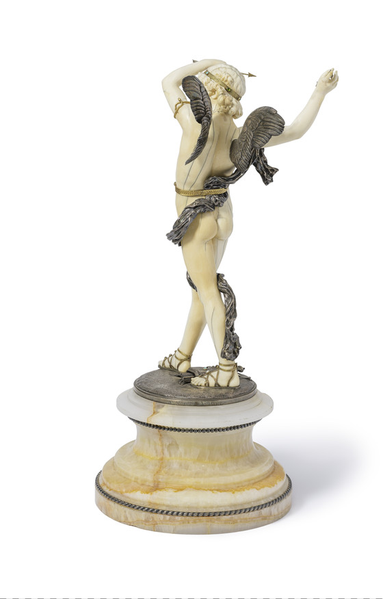 Ivory, silver, gold, and precious stones, with onyx base