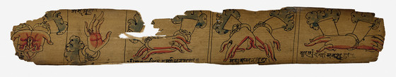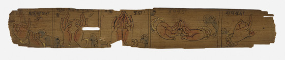 Opaque watercolor and ink on palm leaf