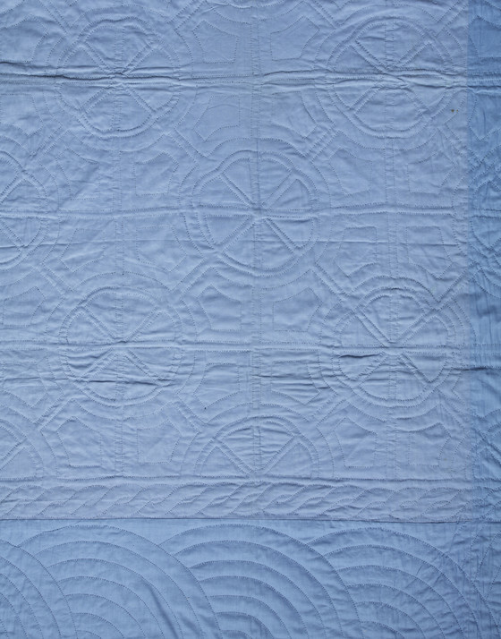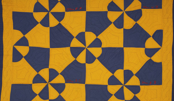 Cotton plain weave, hand and machine pieced, hand embroidered and quilted