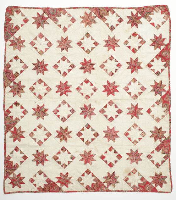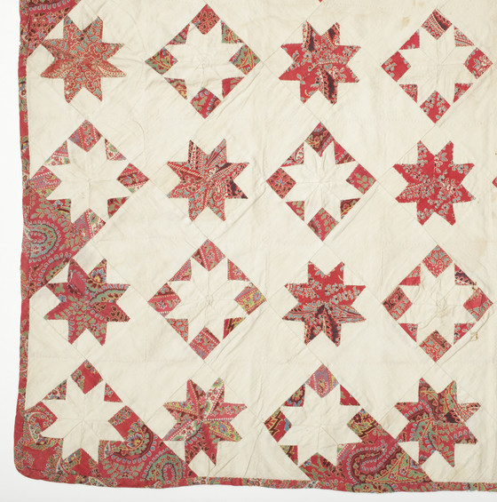 Cotton plain weave, printed, hand pieced and quilted