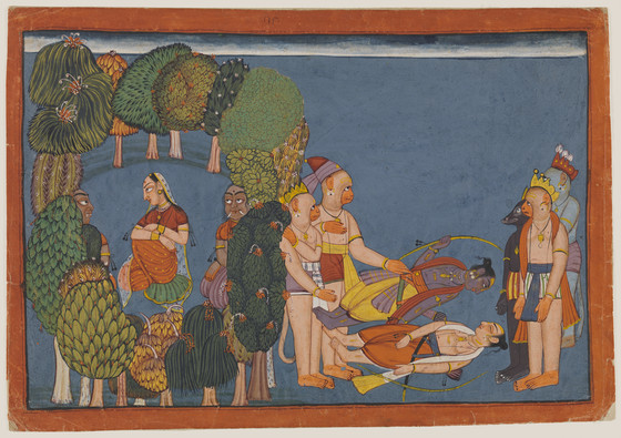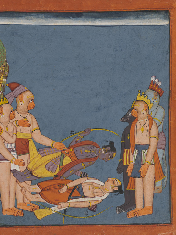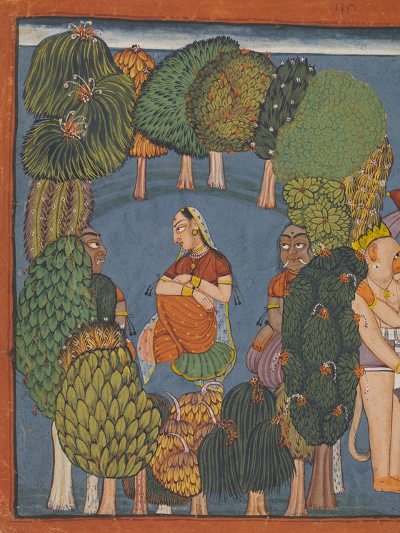 Sita Imprisoned in the Forest Grove (left); Rama and Lakshmana Stricken (right), Folio from the "Shangri" Ramayana (Adventures of Rama)