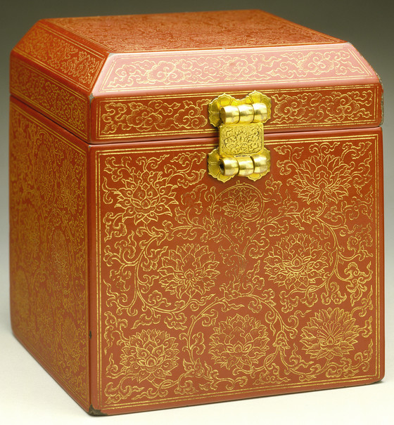 Red lacquer with incised and gold-filled decoration (qiangjin) and gilt-bronze fittings