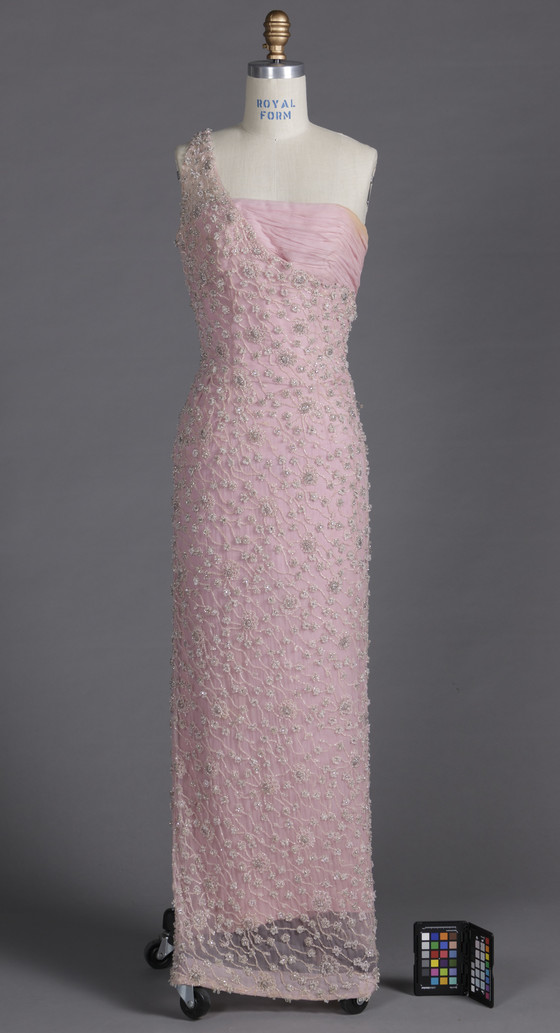 Dress: Silk gauze amd silk plain weave (crepe), with glass beads and crystals