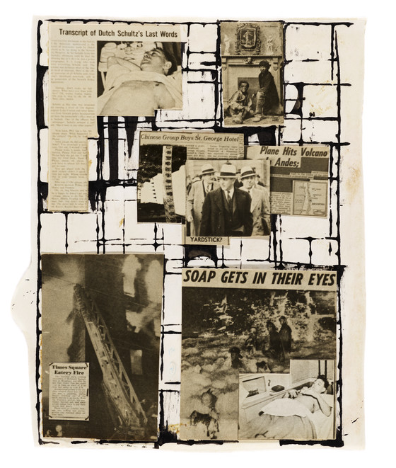 Gelatin-silver prints, newspaper, typewriter, and ink on paper
