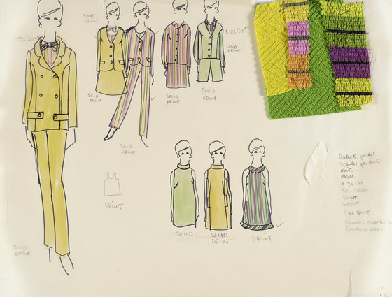 Ink on vellum with fabric swatches