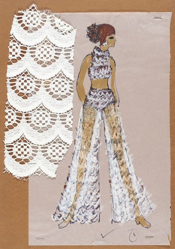 Ink on vellum mounted on cardboard matte with cloth swatch