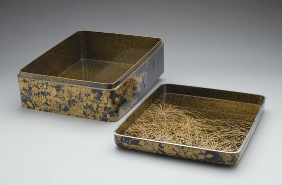 Lacquer with maki-e (sprinkled gold), mother-of-pearl inlay, silver