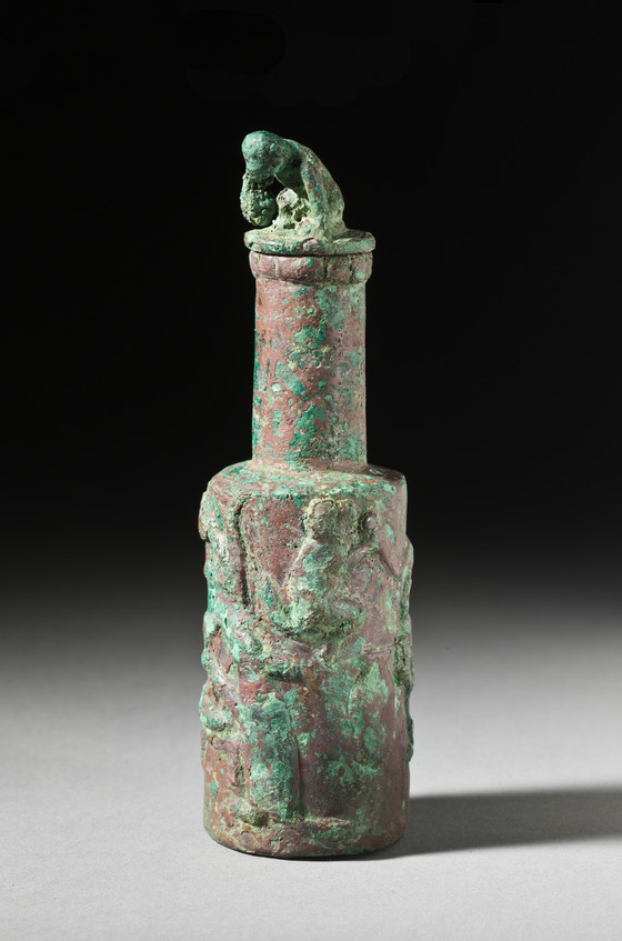 Bottle: 4 1/4 x 1 7/16 in. (10.8 x 3.65 cm) Lid: 1 13/16 x 7/16 in. (4.6 x 1.11 cm)