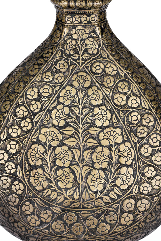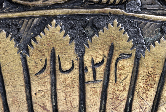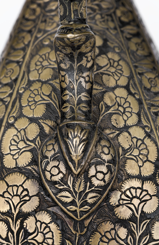 Brass with traces of inlaid black resin ground, cast and engraved