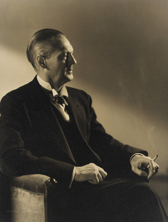 Descriptive: (seated, profile; bow-tie with cigarette)