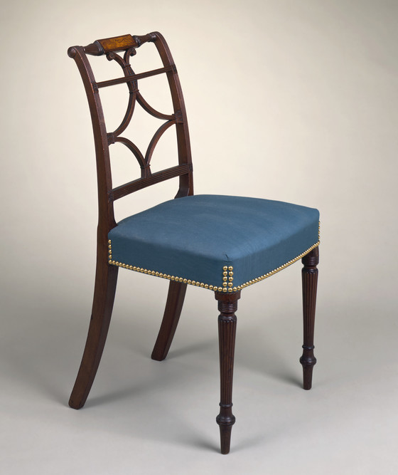 Scroll-back Side Chair with Inlaid Rail and Reeded Legs