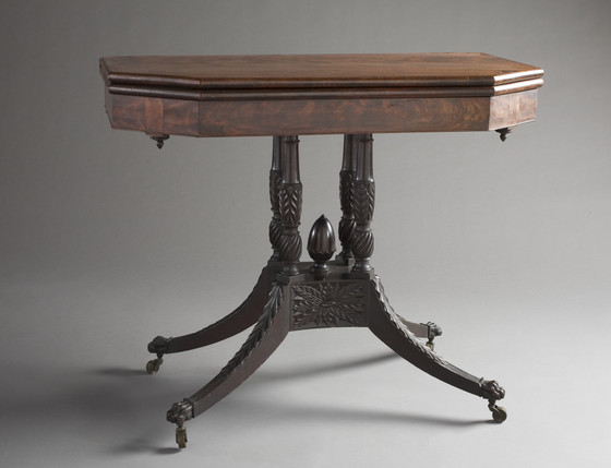 Four-Column Pedestal Card Table with Pineapple Finial
