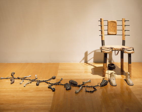 The Birth/Death Chair with Rawhide Shoes, Bones and Organs