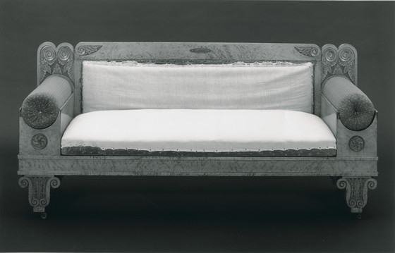 Maple, gilt metal, upholstery