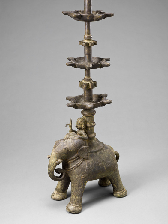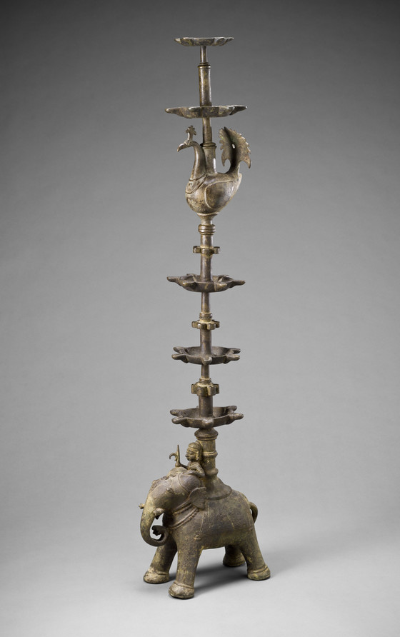 Oil Lamp (samai) with a Peacock and an Elephant Base