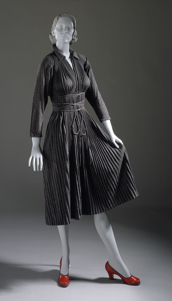 Wool knit, with heat-set pleats.