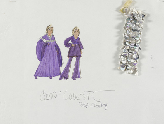 Gouache on paper, mounted on cardboard matte, with cloth swatch attached