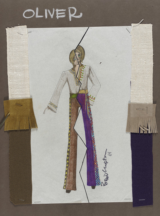 Gouache on paper mounted on cardboard matte with fabric swatches