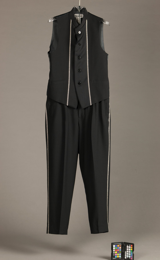 Jacket and Vest: Wool plain weave and wool twill with rayon embroidery; Trousers: Wool plain weave with rayon embroidery