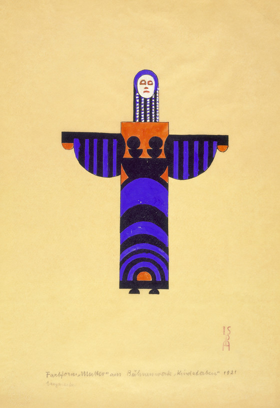 Lithograph with orange, blue and white pochoir on thin Japan paper