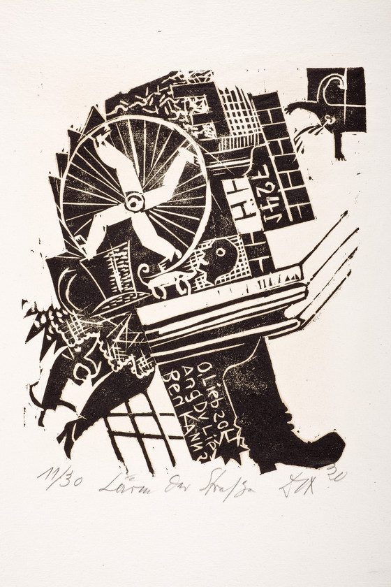 Woodcut on thin, machine-Bütten