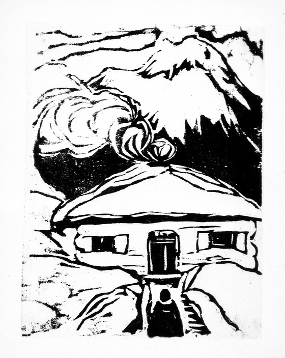 Woodcut on thin Japan paper