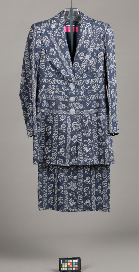 Cotto/linen twill with supplementary warp patterning, metal buttons