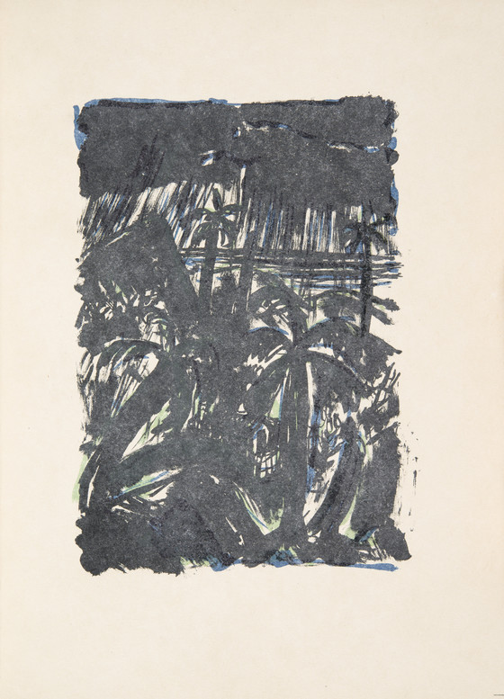 Lithograph printed in black, blue and green on Japan paper