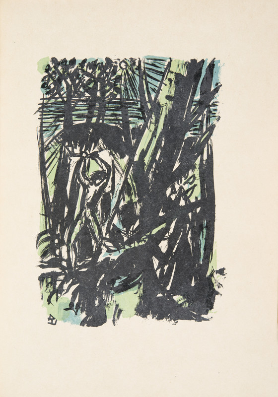 Lithograph printed in black, blue and green on Japan paper