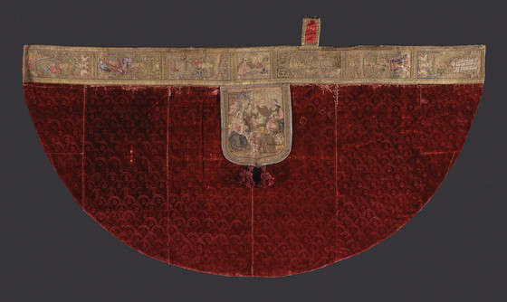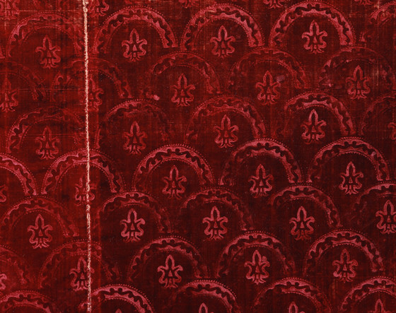 Silk velvet, stamped, and linen plain weave (canvas) with silk and metallic thread embroidery and metallic thread passementerie
