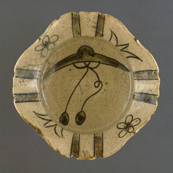 Stoneware; iron underglazing painting, Shino white glaze