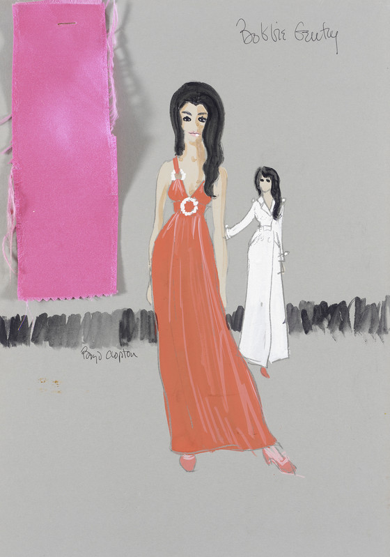 Gouache on paper, cloth swatch, mounted on cardboard matte