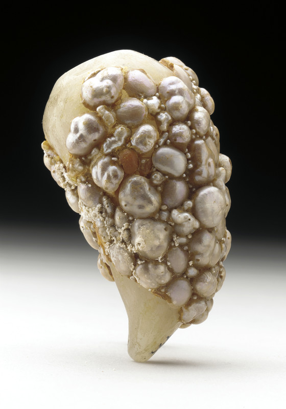 Jade foundation with blister pearls and gray-green jade stopper