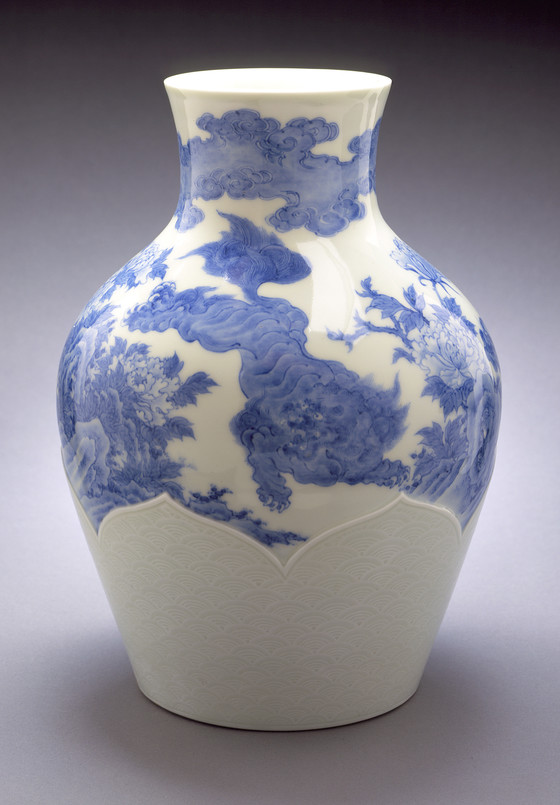 Alternate Title: 平戸三河内焼染付獅子牡丹波文花瓶