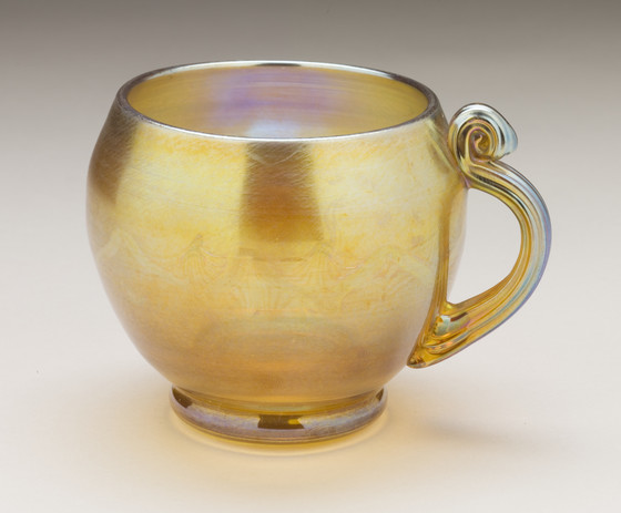 Blown favrile glass with applied handle
