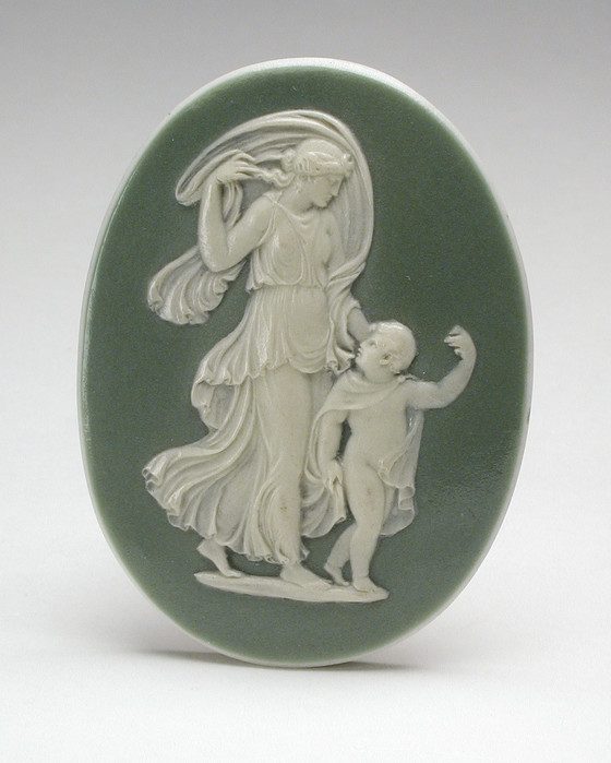 Stoneware (jasperware with green dip and applied relief)