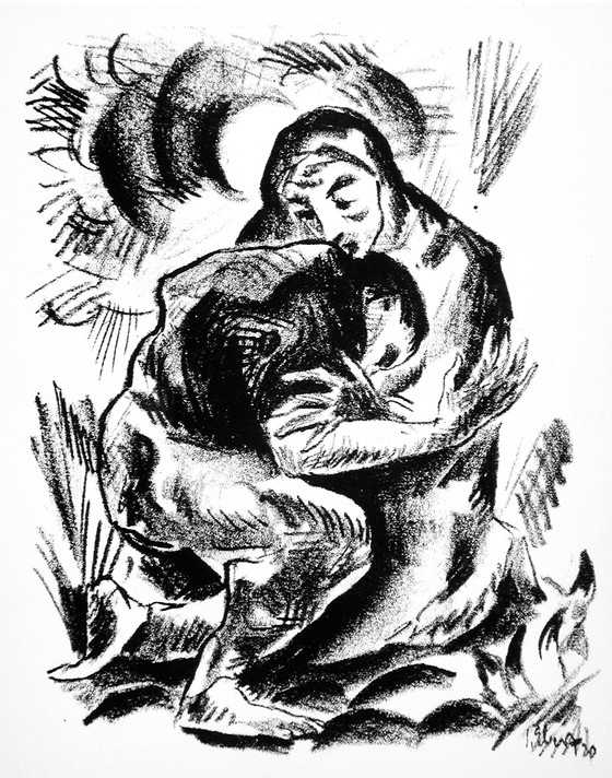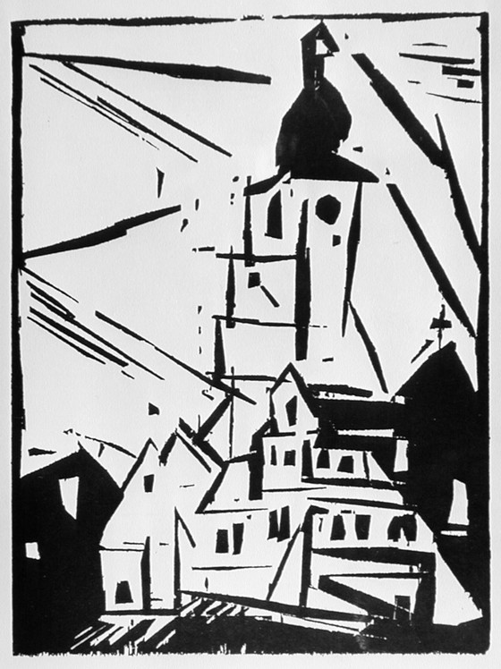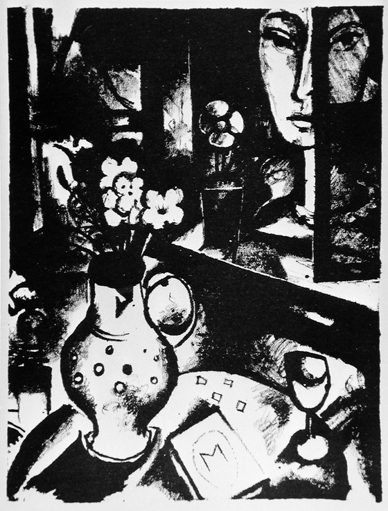Printed material with four lithographs, three woodcuts and one linocut on wove paper