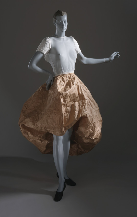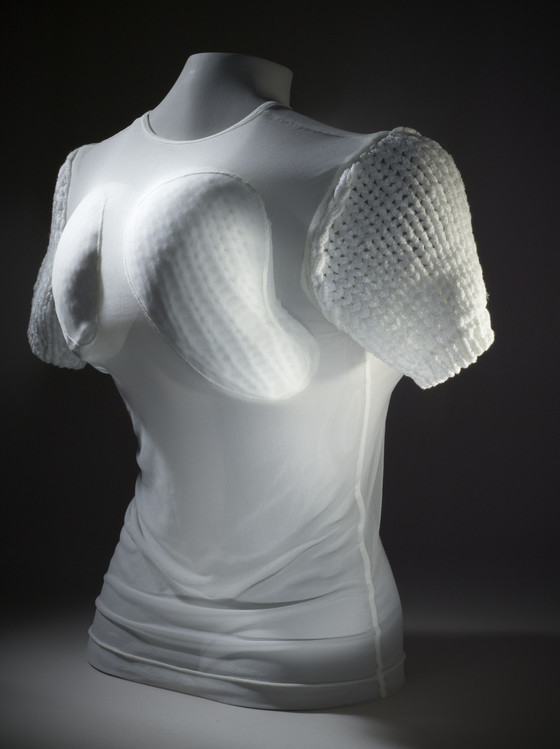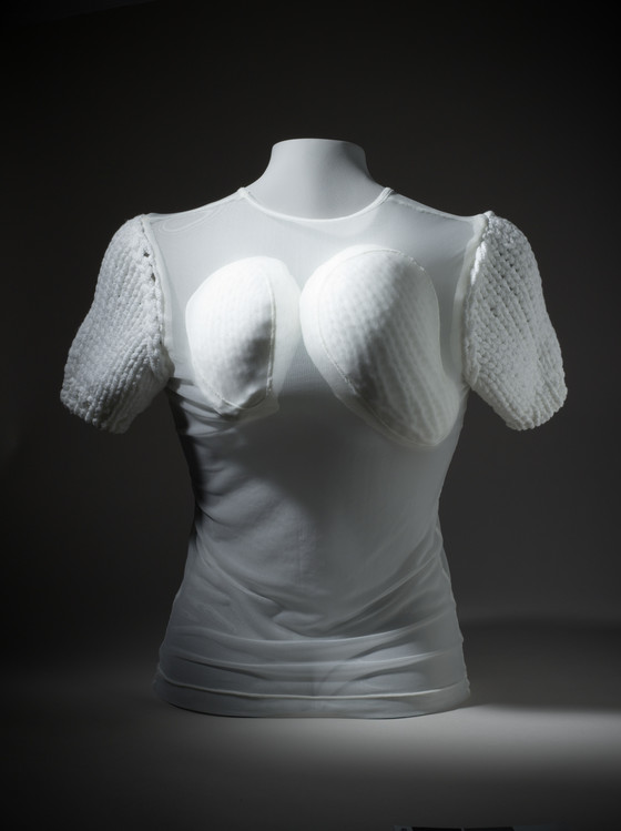 Blouse: Cotton/nylon net with cotton and Lurex knit;