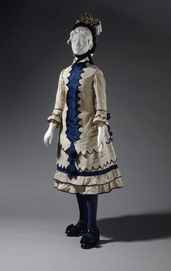Silk plian weave (faille) and silk plain weave (taffeta) with silk lace trim and mother-of-pearl buttons