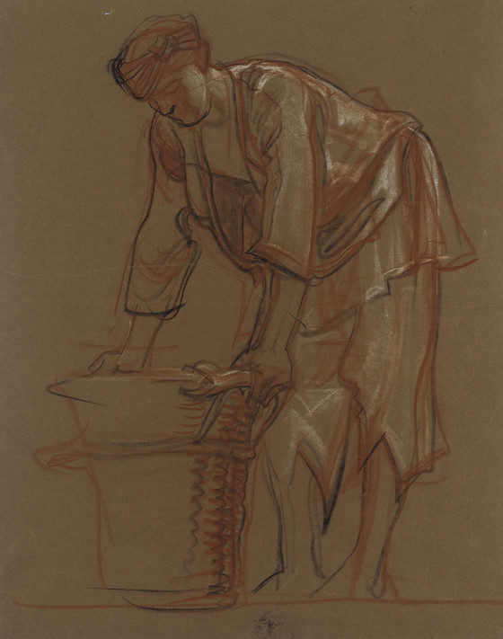 Black, red, and white chalks on brown paper